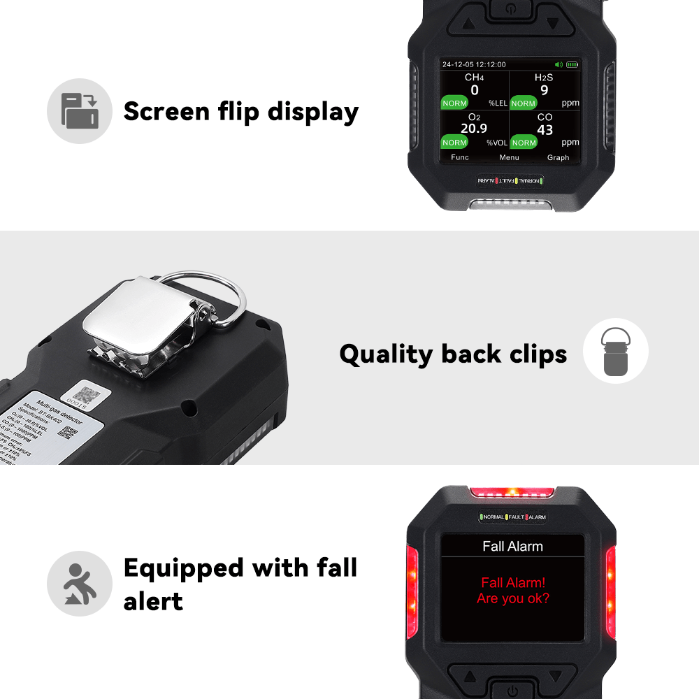Портативный многогазовый детектор BT-BX402 использует метод естественной диффузионной пробоотбора для обнаружения газов. В нем используются высококачественные газовые датчики, обеспечивающие превосходную чувствительность и воспроизводимость, что делает его простым в эксплуатации и обслуживании. Этот прибор отличается высокой надежностью в обнаружении опасных уровней газов, тем самым обеспечивая вашу безопасность и сохранность имущества. Корпус детектора изготовлен из высокопрочного инженерного пластика в сочетании с противоскользящей резиной, что обеспечивает долговечность и удобный захват. Он также водонепроницаем, пылезащищен и взрывозащищен.